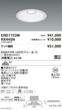 ダウンライトは250φリニューアル用LEDを選定しました。